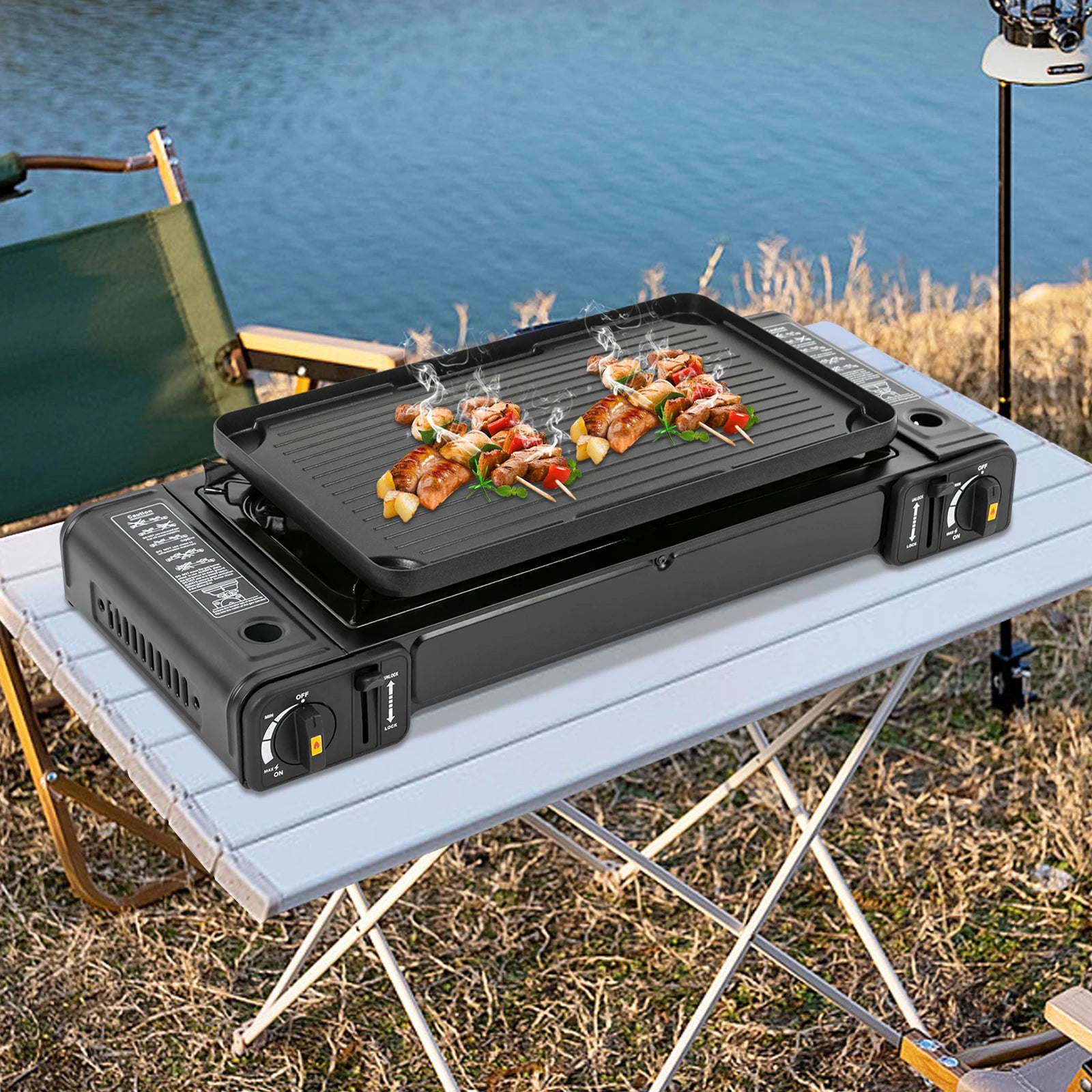 - Dual burners give you flexible cooking power with ready-to-use butane fuel, perfect for boiling water, simmering sauces, frying breakfast, or warming soups, while preserving fuel efficiency.