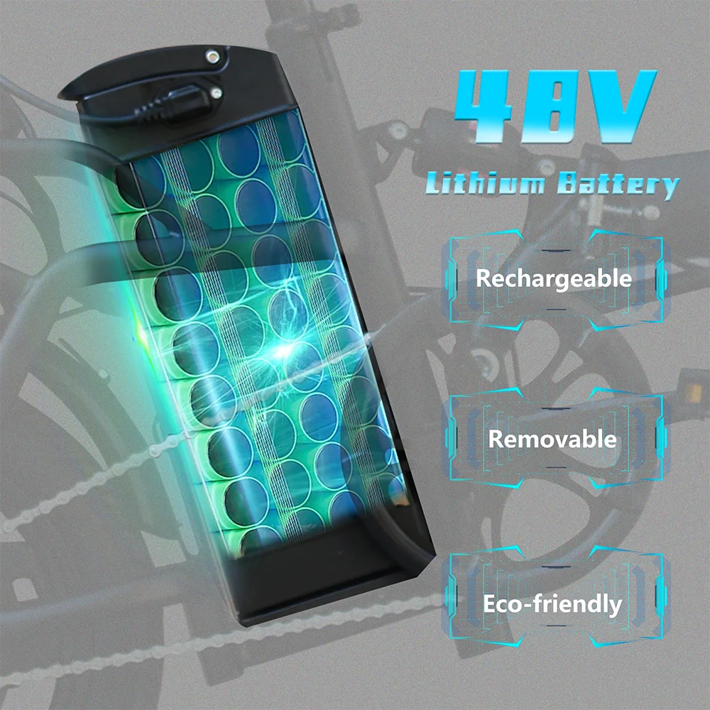 - Flexible battery options: 48V battery options 10Ah or 15Ah give you longer rides between charges, so you can go farther on a single trip.