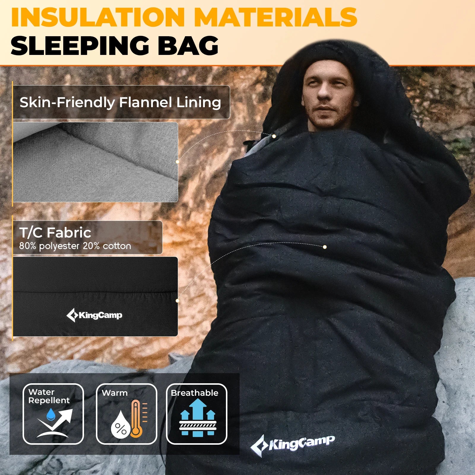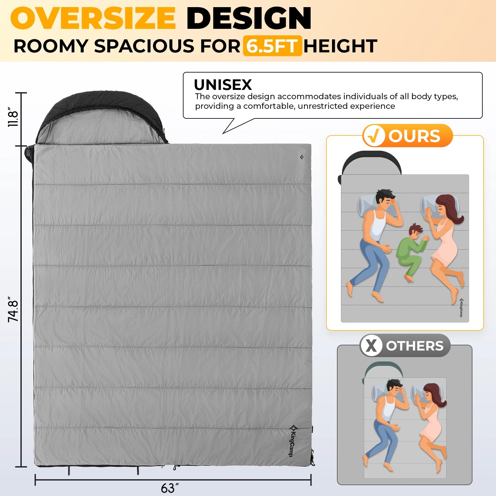 KingCamp 3-in-1 Envelope Hooded Sleeping Bag, Detachable And Flexible Double Blanket, Sleeping Bag For All Season Camping Hiking